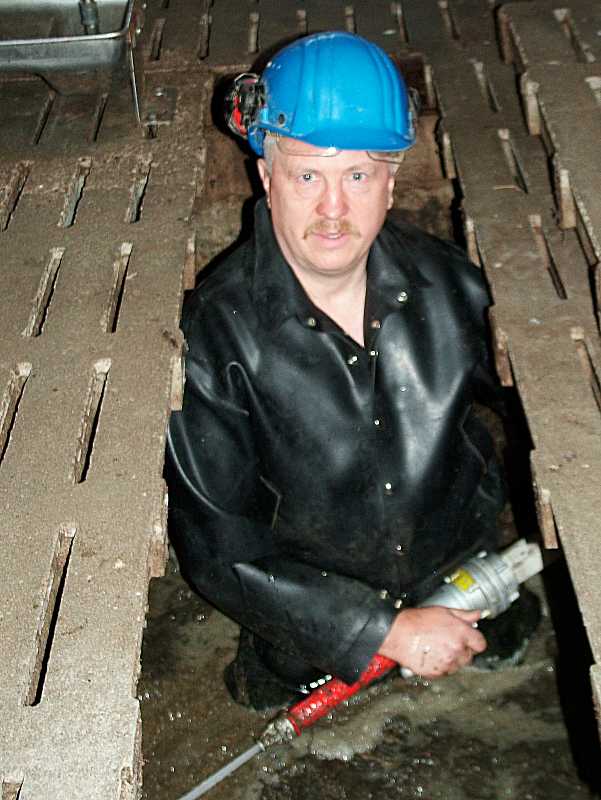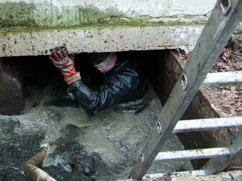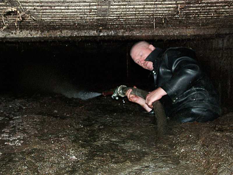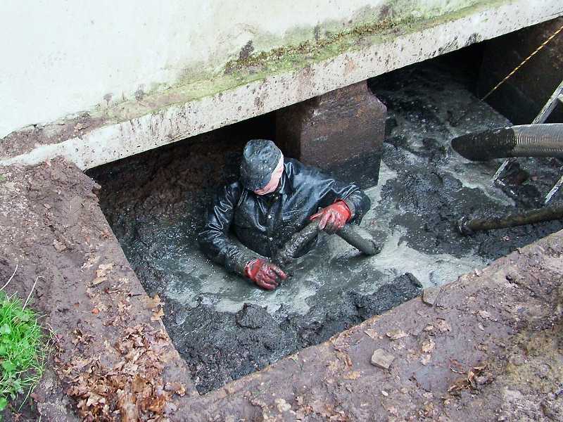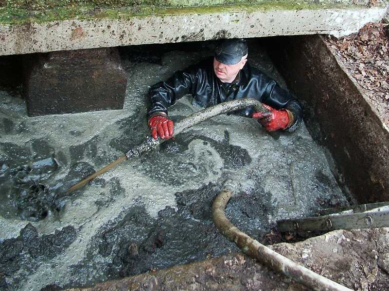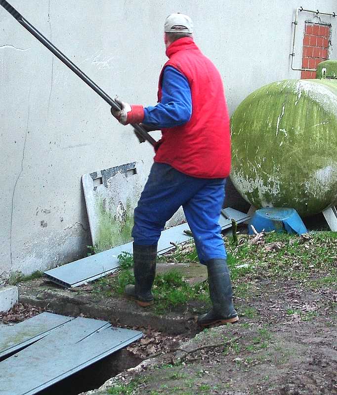 mit Feuerwehrlanze gerührt und gleichzeitig abgesaugt