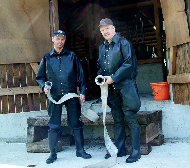 Massive feste Schicht ca 1m mit Stroh mit Feuerwehrlanze gerührt