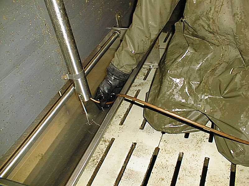 Reinigung der Fütterungsrohre mit einer Spülratte